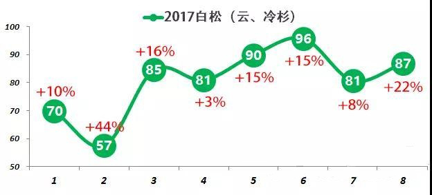 8月白松(云、冷杉)進(jìn)口87萬立方米,較去年同期增長22%;