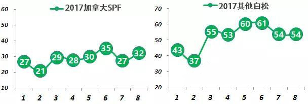 來自瑞、芬、俄的北歐云杉,前8個月累積進(jìn)口418萬立方米,占白松總量的65%;加拿大SPF本月略有回升,8月進(jìn)口32萬立方米。