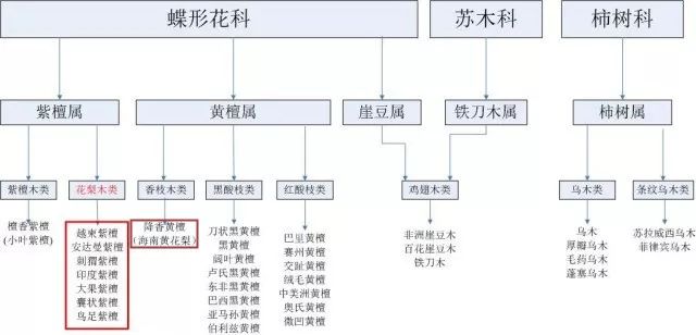 其次,“花梨木”不是具體指某一個樹種,這個稱呼出自紅木《國標(biāo)》中紫檀屬的花梨木類,所以真正意義上的花梨木只有紅木《國標(biāo)》中的七種:越柬紫檀、安達(dá)曼紫檀、大果紫檀、刺猬紫檀、印度紫檀、囊狀紫檀、鳥足紫檀。