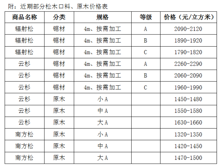 ? ? 不過,雖然大家都知道目前松木的價(jià)格已經(jīng)嚴(yán)重過高,中下游廠家拿貨的謹(jǐn)慎情緒也十分濃郁,但是小編還是很無奈地想要提醒大家,未來松木的價(jià)格或許還會有繼續(xù)走升的可能(這種可能性很大)。