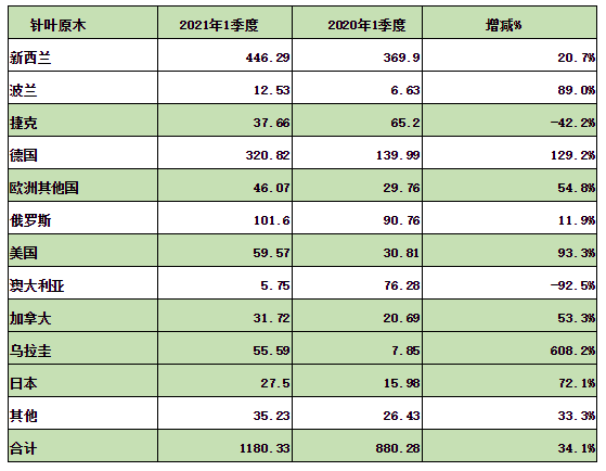 ? ? 不過各國(guó)的進(jìn)口情況來看,烏拉圭、德國(guó)、新西蘭和日本市場(chǎng)是最受人關(guān)注的,尤其是烏拉圭市場(chǎng)。在全球疫情、海運(yùn)堵塞等政治、經(jīng)濟(jì)等因素的作用下,為填補(bǔ)國(guó)內(nèi)針葉木材市場(chǎng)的缺口,以及降低針葉原木采購(gòu)成本的考慮,國(guó)內(nèi)木材商家紛紛轉(zhuǎn)而將目光轉(zhuǎn)移到烏拉圭等南美國(guó)家的針葉原木上,這是一季度烏拉圭針葉原木進(jìn)口數(shù)量大幅度增長(zhǎng)的原因。