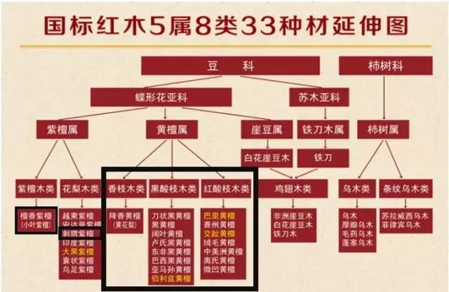 2016年之前,檀香紫檀(小葉紫檀)、交趾黃檀(大紅酸枝)、盧氏黑黃檀(大葉紫檀)、微凹黃檀、中美洲黃檀、伯利茲黃檀這六種《紅木》國(guó)標(biāo)中的樹種已經(jīng)陸續(xù)被收入《瀕危野生動(dòng)植物種國(guó)際貿(mào)易公約》(CITES)附錄二中,巴西黑黃檀被收入《瀕危野生動(dòng)植物種國(guó)際貿(mào)易公約》(CITES)附錄一中。