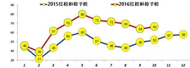 樟子松、赤松前10月累積進(jìn)口641萬(wàn),大幅增加35%,預(yù)計(jì)全年歷史性突破超過(guò)700萬(wàn)方。